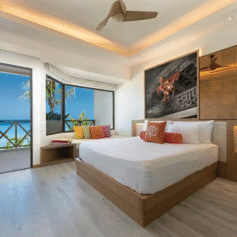 Resort razpolaga s 268 sodobno opremljenimi namestitvenimi enotami na obali in na vodi. Vse sobe imajo klimatsko napravo, udobno posteljo, kopalnico s prho in sušilcem za lase, sef, televizor, brezplačen Wi-Fi, dnevno polnjeni mini bar (voda, brezalkoholne pijače, pivo) ter balkon ali teraso z razgledom na morje. Vodne vile omogočajo neposreden vstop v morje.